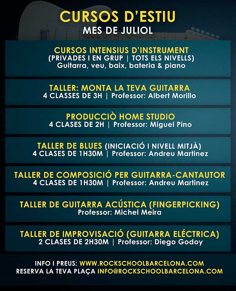 Cursos y talleres de instrumento, de producción, de composición e incluso para montar vuestra propia guitarra.